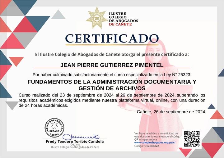 De parte del Ilustre Colegio de Abogados de Cañete te felicitamos por tu esfuerzo. ¡Sigue aprendiendo todos los días!
