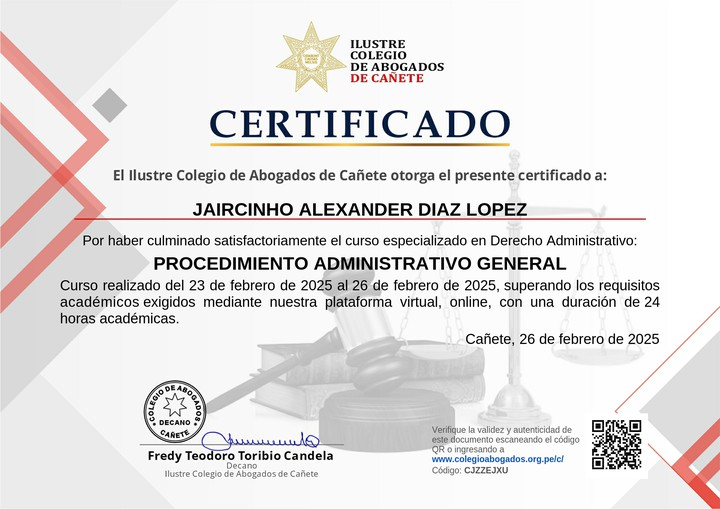 De parte del Colegio de Abogados de Cañete te felicitamos por tu esfuerzo. ¡Sigue aprendiendo todos los días!