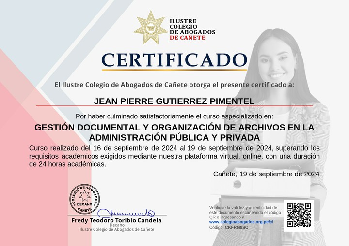 De parte del Ilustre Colegio de Abogados de Cañete te felicitamos por tu esfuerzo. ¡Sigue aprendiendo todos los días!
