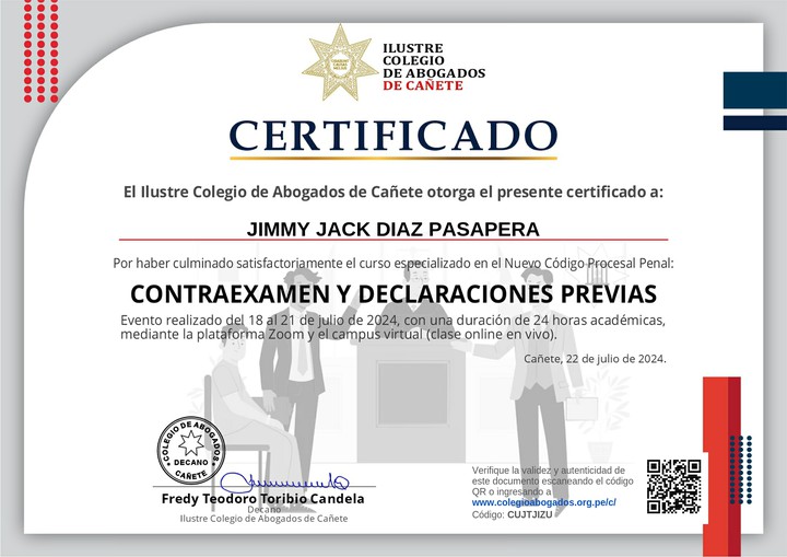 De parte del Ilustre Colegio de Abogados de Cañete te felicitamos por tu esfuerzo. ¡Sigue aprendiendo todos los días!