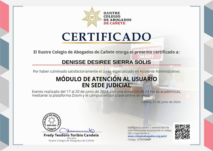 De parte del Ilustre Colegio de Abogados de Cañete te felicitamos por tu esfuerzo. ¡Sigue aprendiendo todos los días!